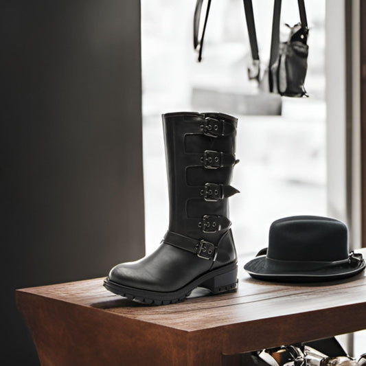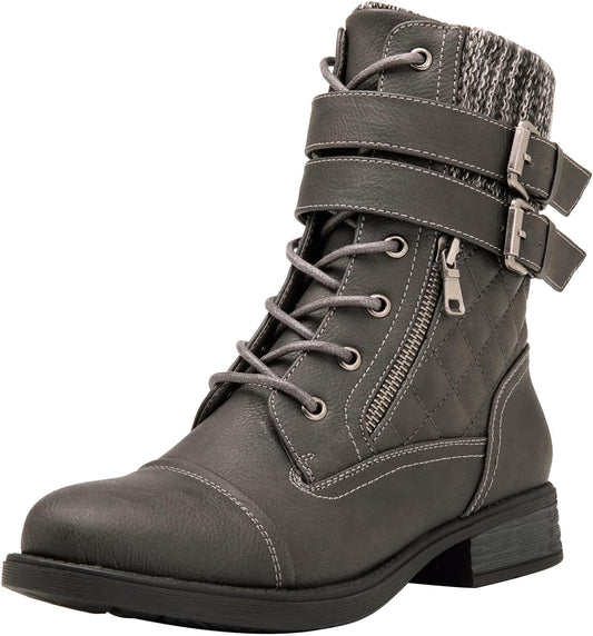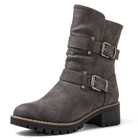 GLOBALWIN Chunky Mid Calf Fashion Dressy Motocycle Biker Military Style Combat Boots